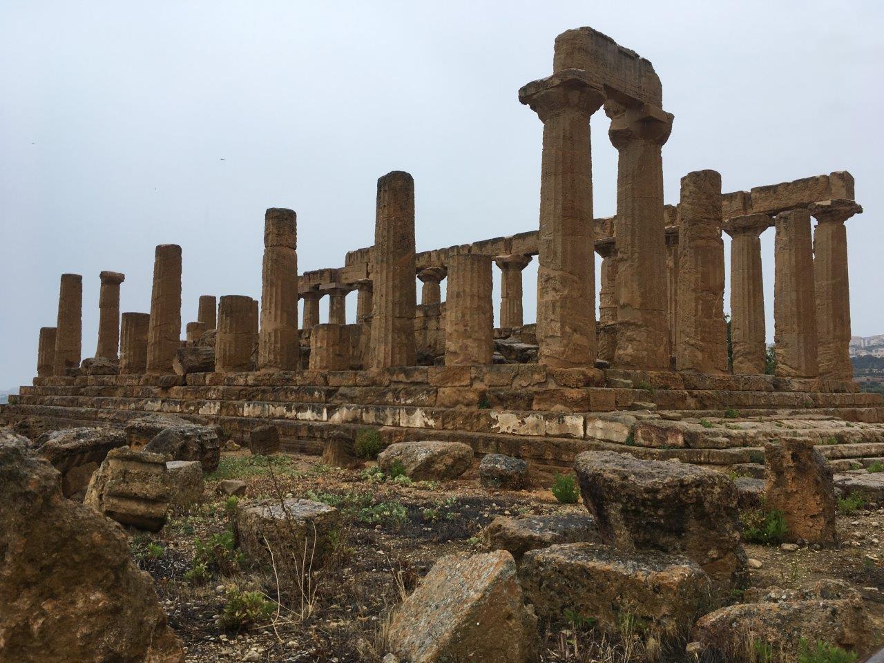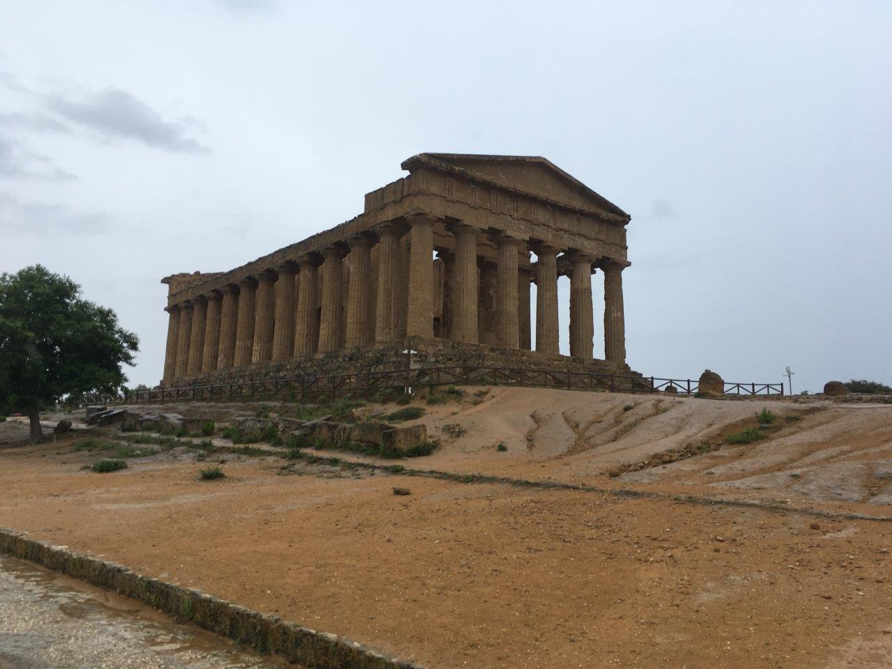 Valley of the Temples in Agrigento -- Concordia Temple. The Greeks were another group that lived in Sicily! But they didn't have marble like in Athens so they had to use sandstone, hence why these temples are more tan and crumbled