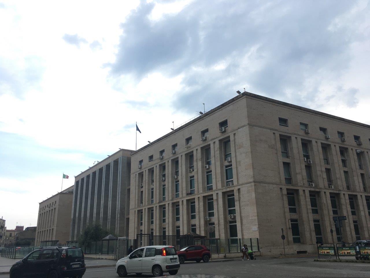 I think this is the Palermo courthouse that we rushed by! It reads "Palazzo di Giustizia" like Palace of Justice. Link to interesting site. Palermo IS the capital of Sicily. It caught my eye because it looks more modern than official government buildings in Washinton D.C., but I guess that makes sense in a place where everything else looks so historic.