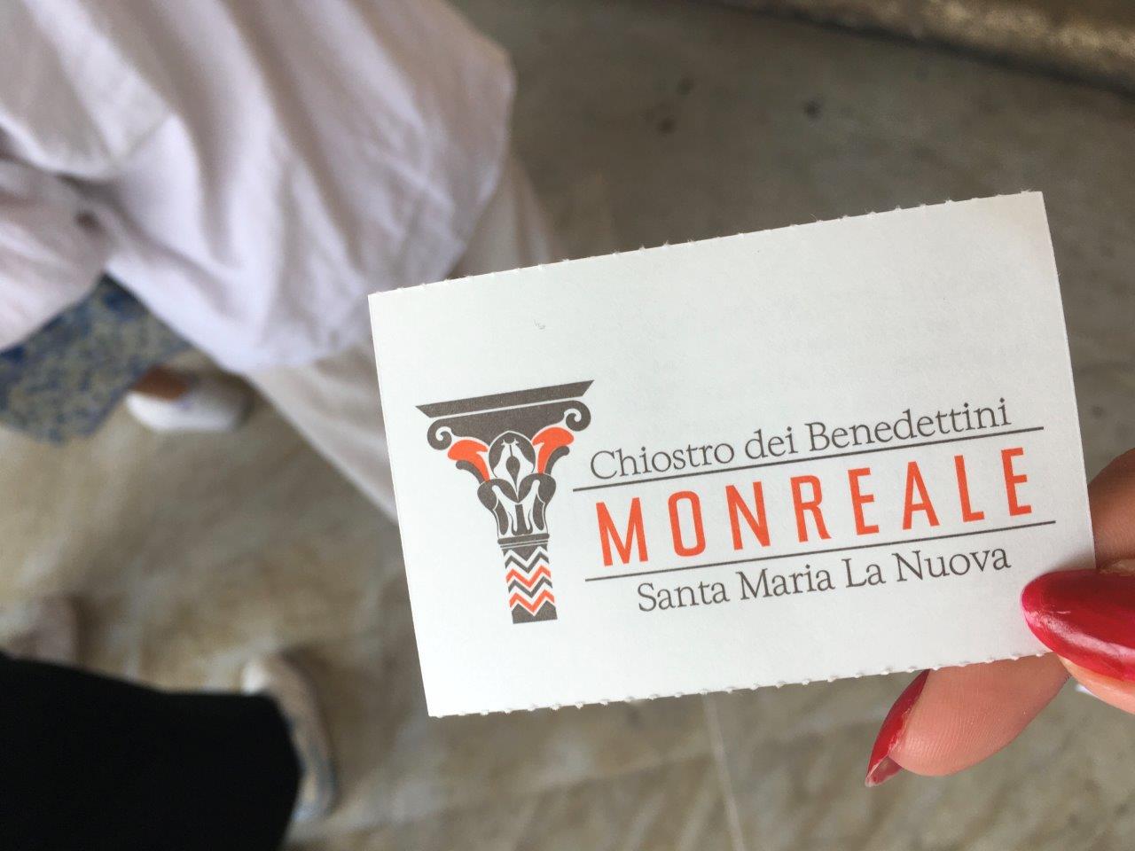Ticket to the Moreale church, which the Normans wanted to be larger and somehow grander than the Cappella Palatina for coronations, so it's up in a mountain overlooking Palermo.