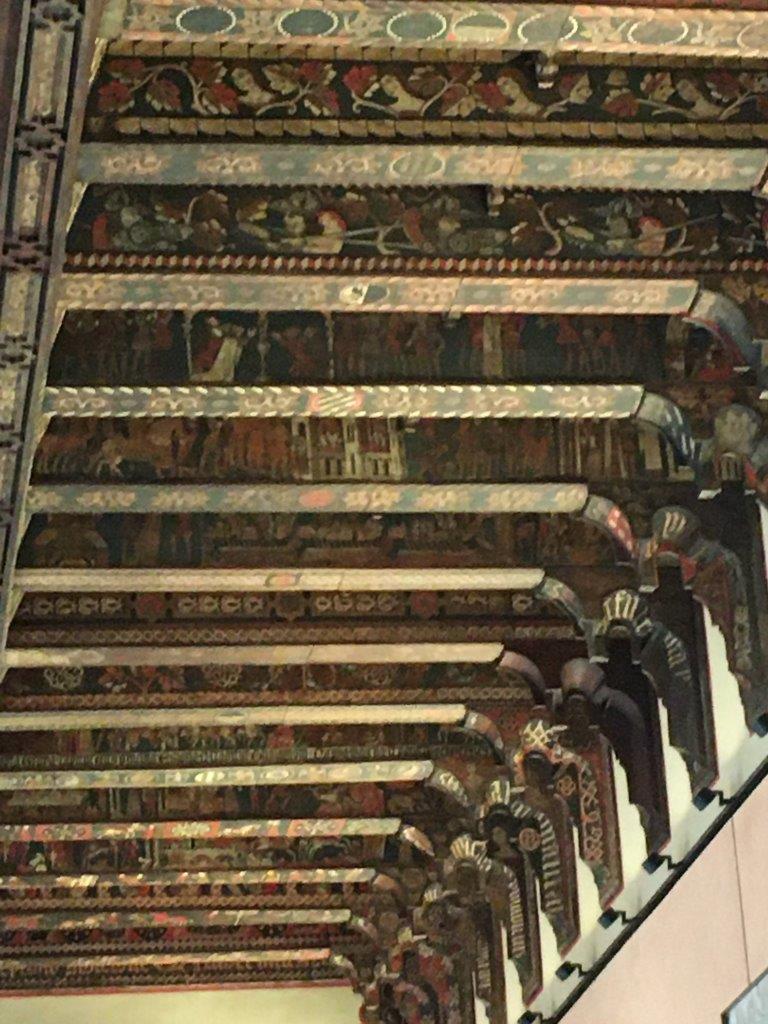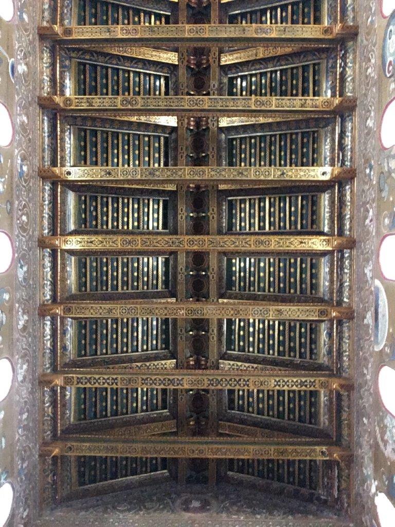 Well, by this point, they didn't have the traveling Muslim artists to make a muqarnas ceiling anymore. This is what they came up with instead. Sicilian style now included this idea of the ornate ceiling because it was so beautiful and unique in Europe.