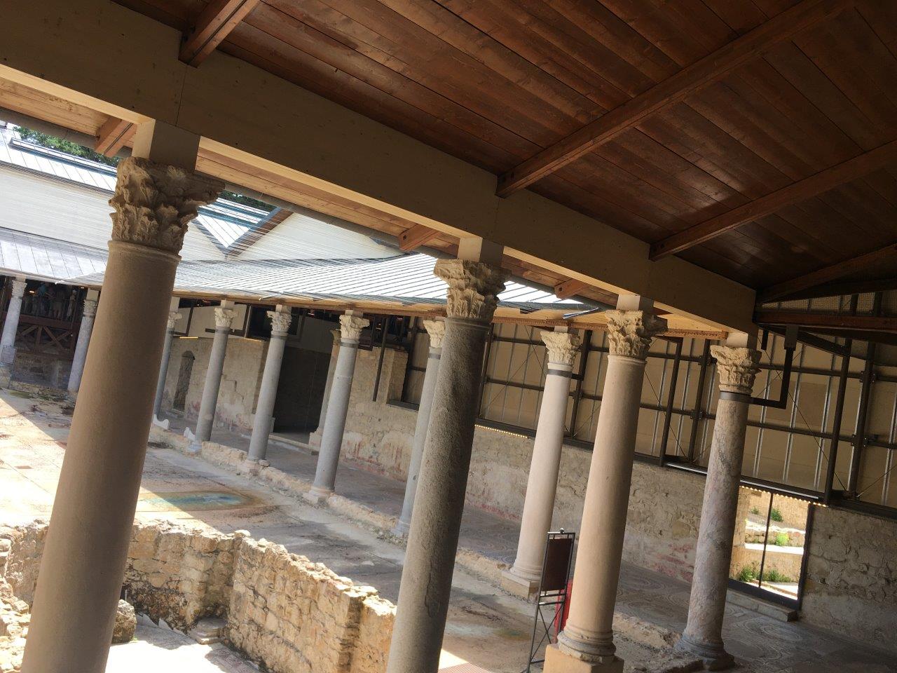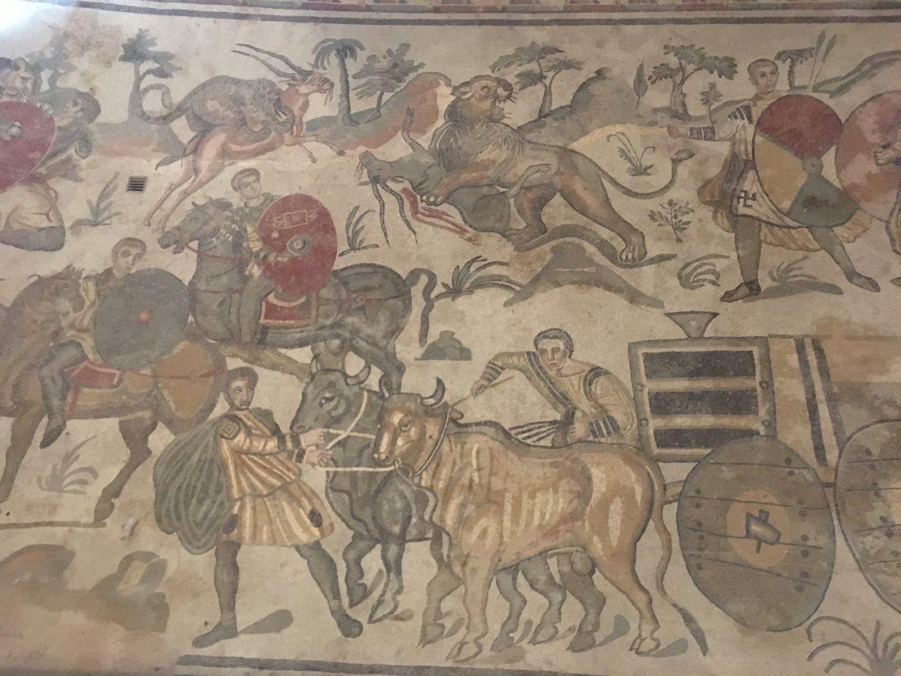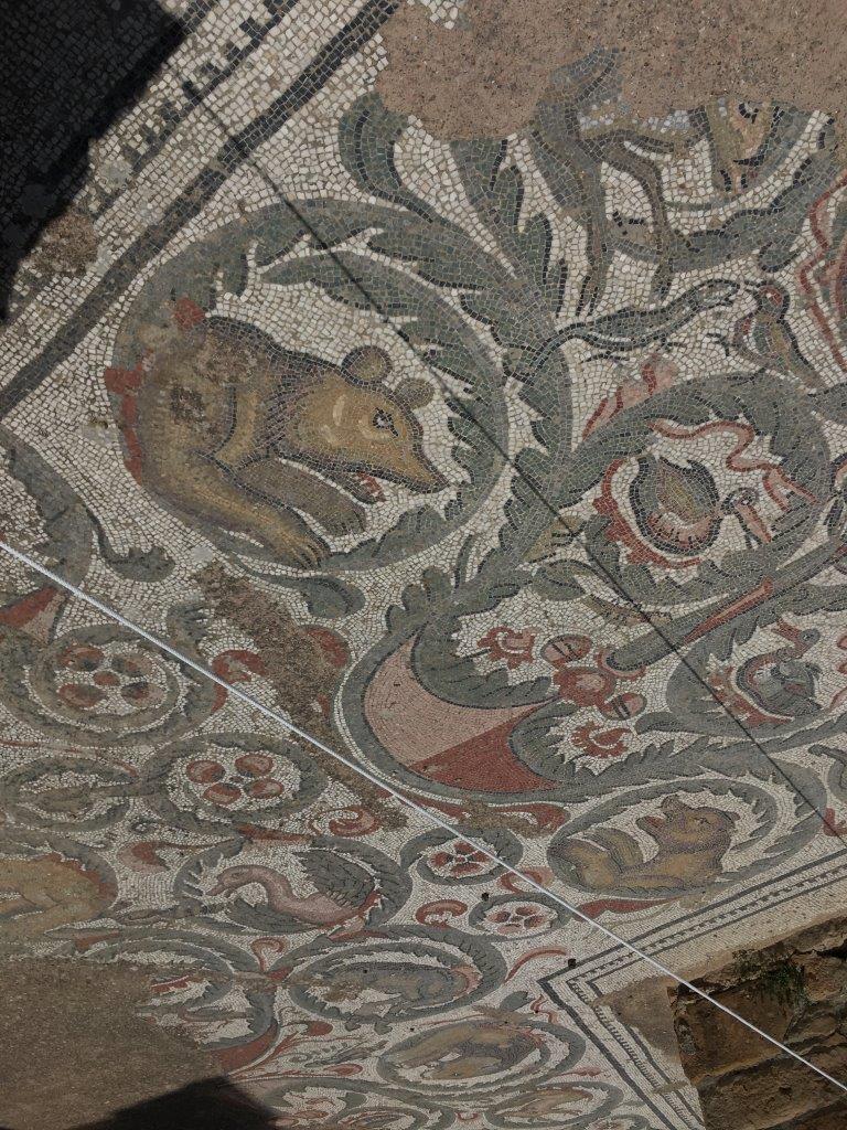 A Roman Villa, which was like a mansion. This would have been from around 600 C.E., so the roof is a modern addition to protect the remarkable floor! Tourists can't walk on it, we shuffled through elevated wood walkways