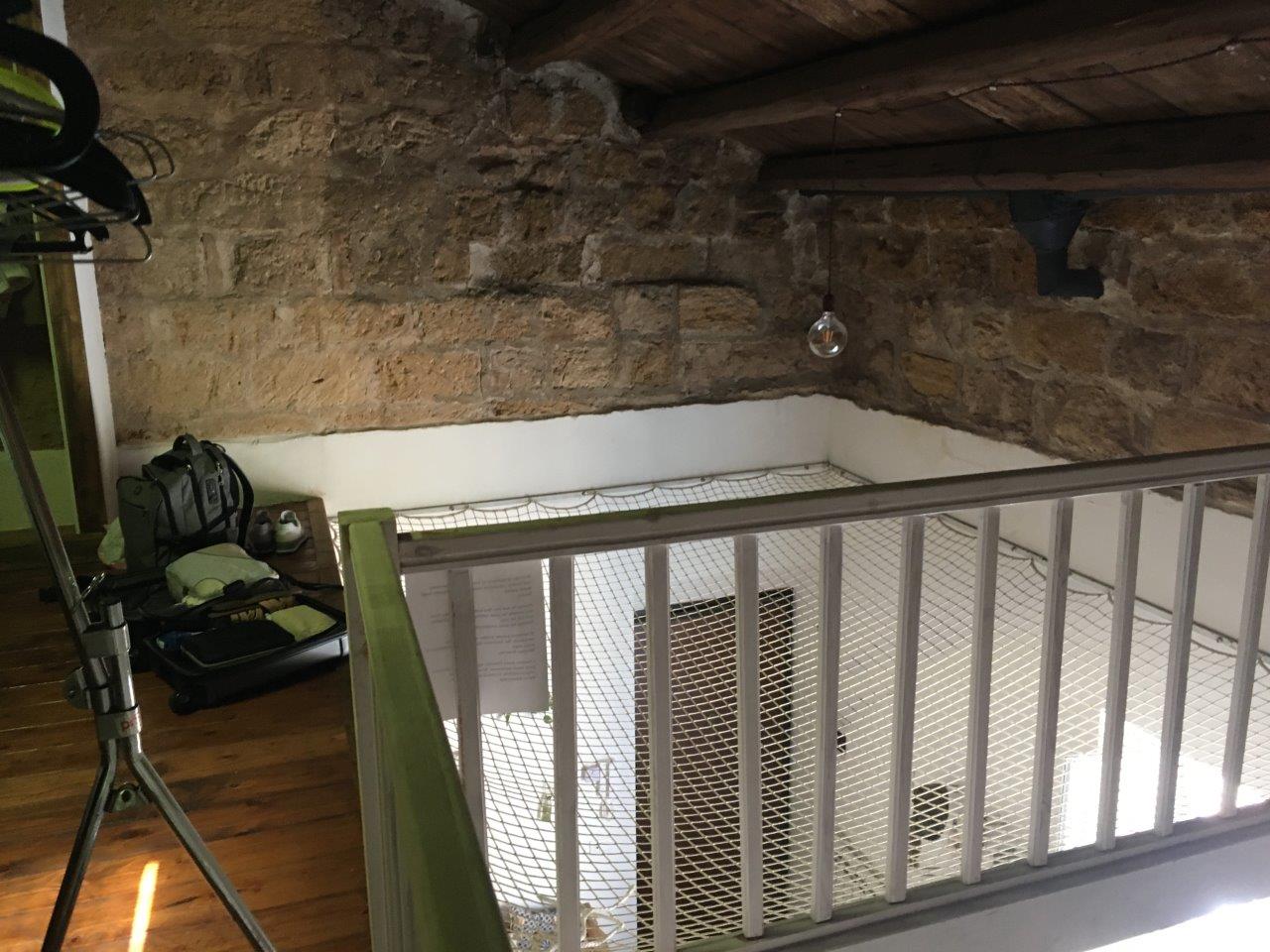 And at the top of the stairs, no railing! But a net!