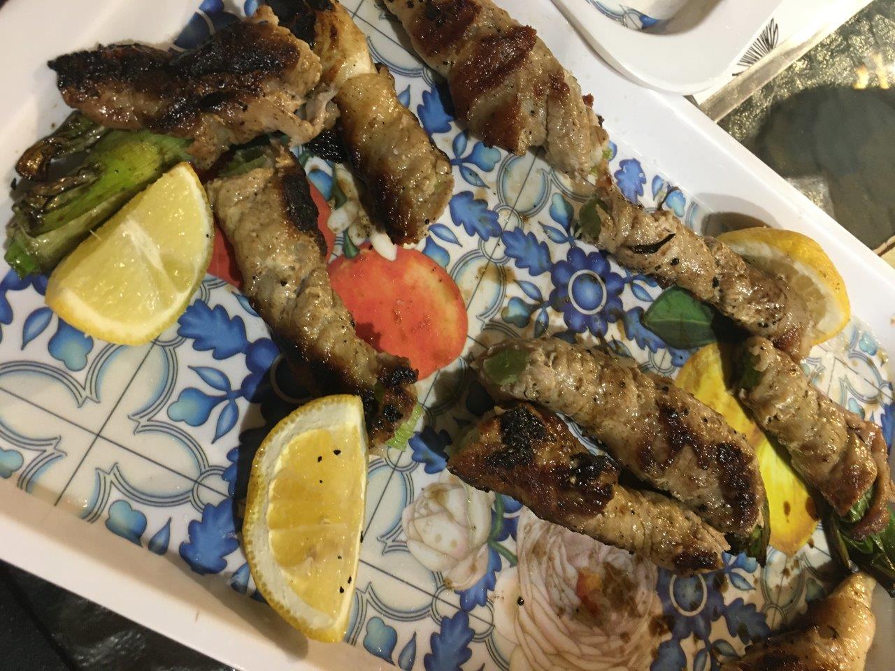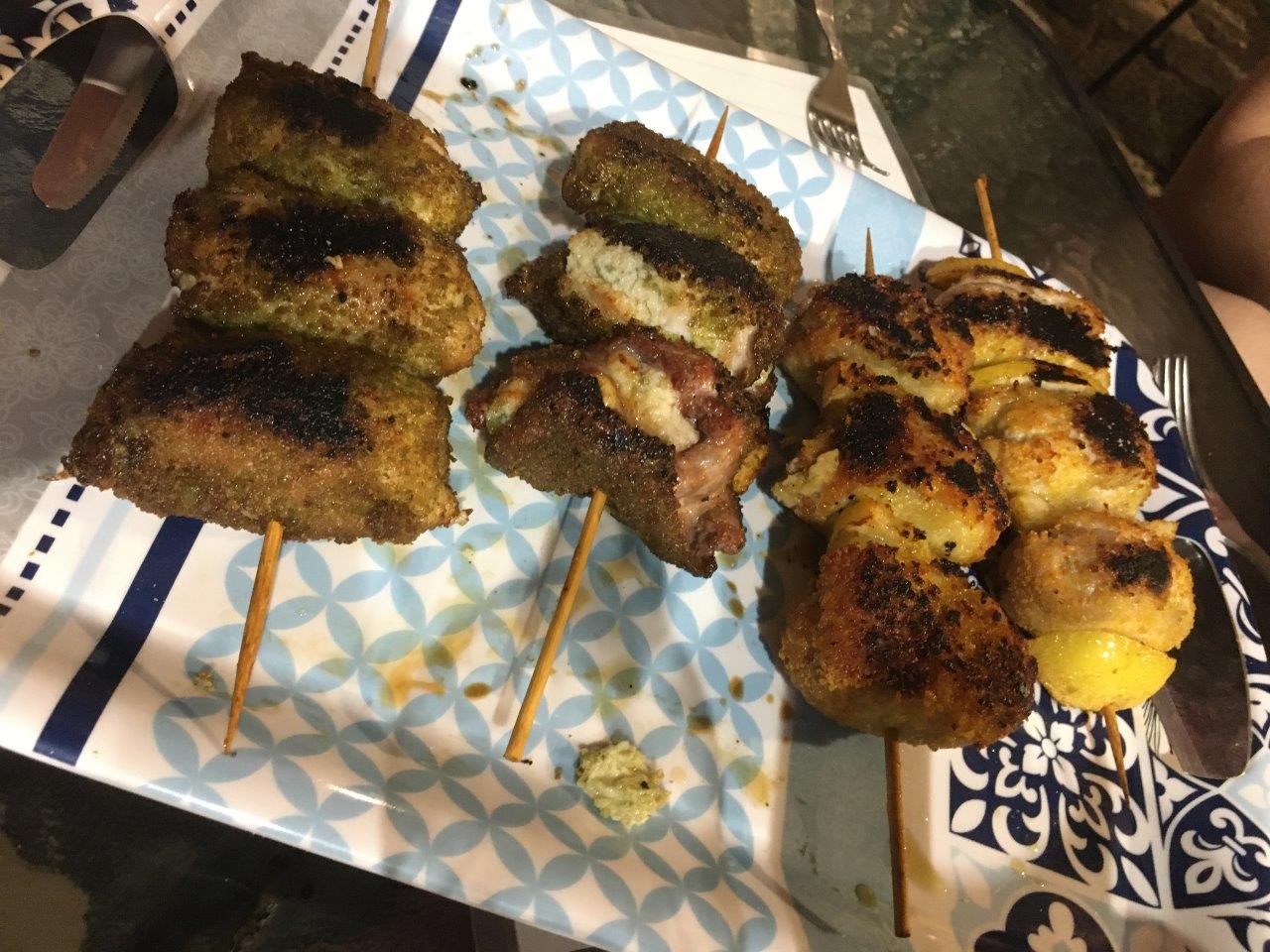 Spiedini, which my dad says was a favorite that his mom used to make. Meat skewers.