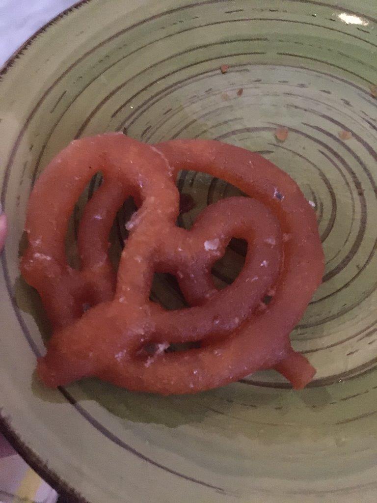Jalebi!!! The only cuisine we could find, besides Italian, was American at the one McDonald's and then Indian/Bengali. See what I said about Mussolini, ugh. But I've had these before, just never so cheap, a quarter for one. It's like Indian funnel cake soaked in honey.