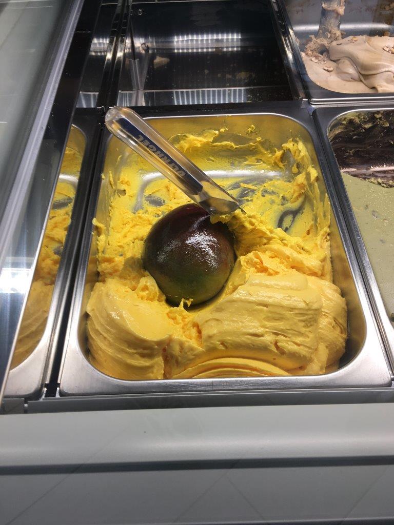 Mango granita, sorbet-style. Love how they labeled it very clearly.