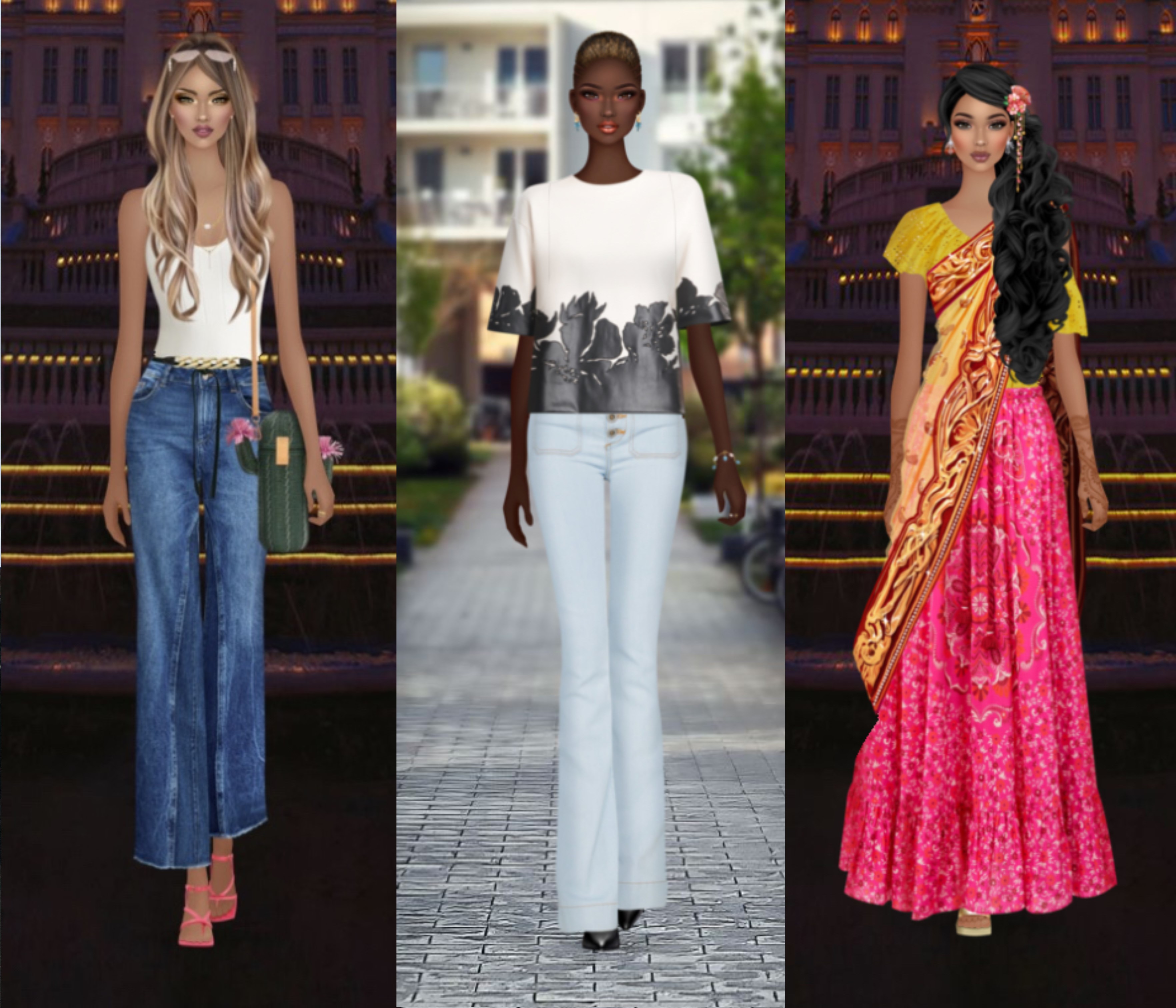I couldn't really find pictures before I went of what women you pass on the streets are wearing, which I wanted because I didn't want to completely stand out TOURIST. For safety reasons! And rather than post pictures of random people, I recreated some of the looks I saw on my favorite app/paper doll game Covet Fashion. My conclusion is: